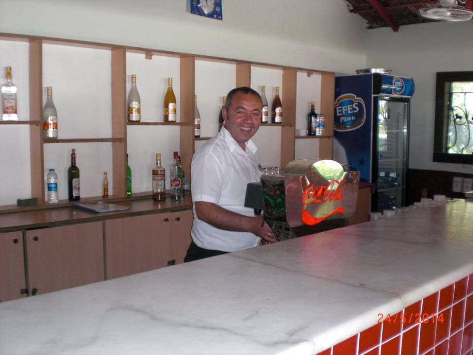 Der Spitzenmann an der Beachbar.Von Hüseyin bekommt man jeden Drink. Jeden Mittag um 12 Uhr läutet er die Glocke und schreit "Mahlzeit".