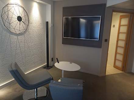 Wohnbereich mit Schlafsofa und großem TV ohne deutsche Sender