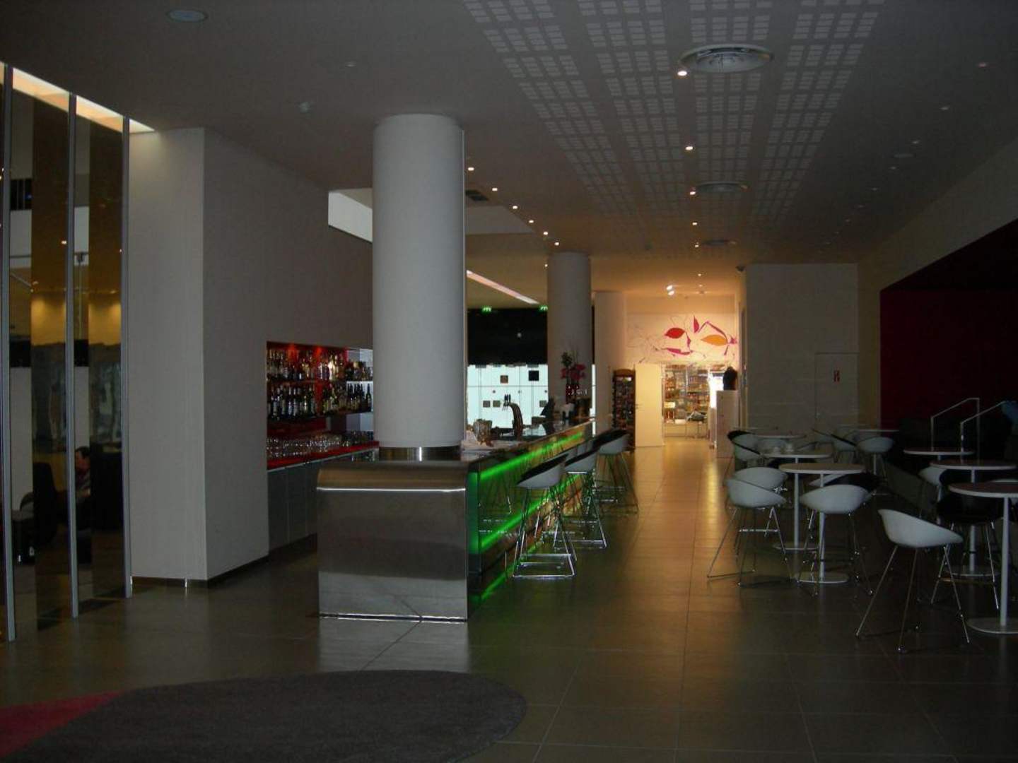 Bar im Novotel Paris Est (ehemals Novotel Paris Bagnolet). Auch die Bar, wie die gesamte Lobby, ist im schicken Retro-Look gehalten.