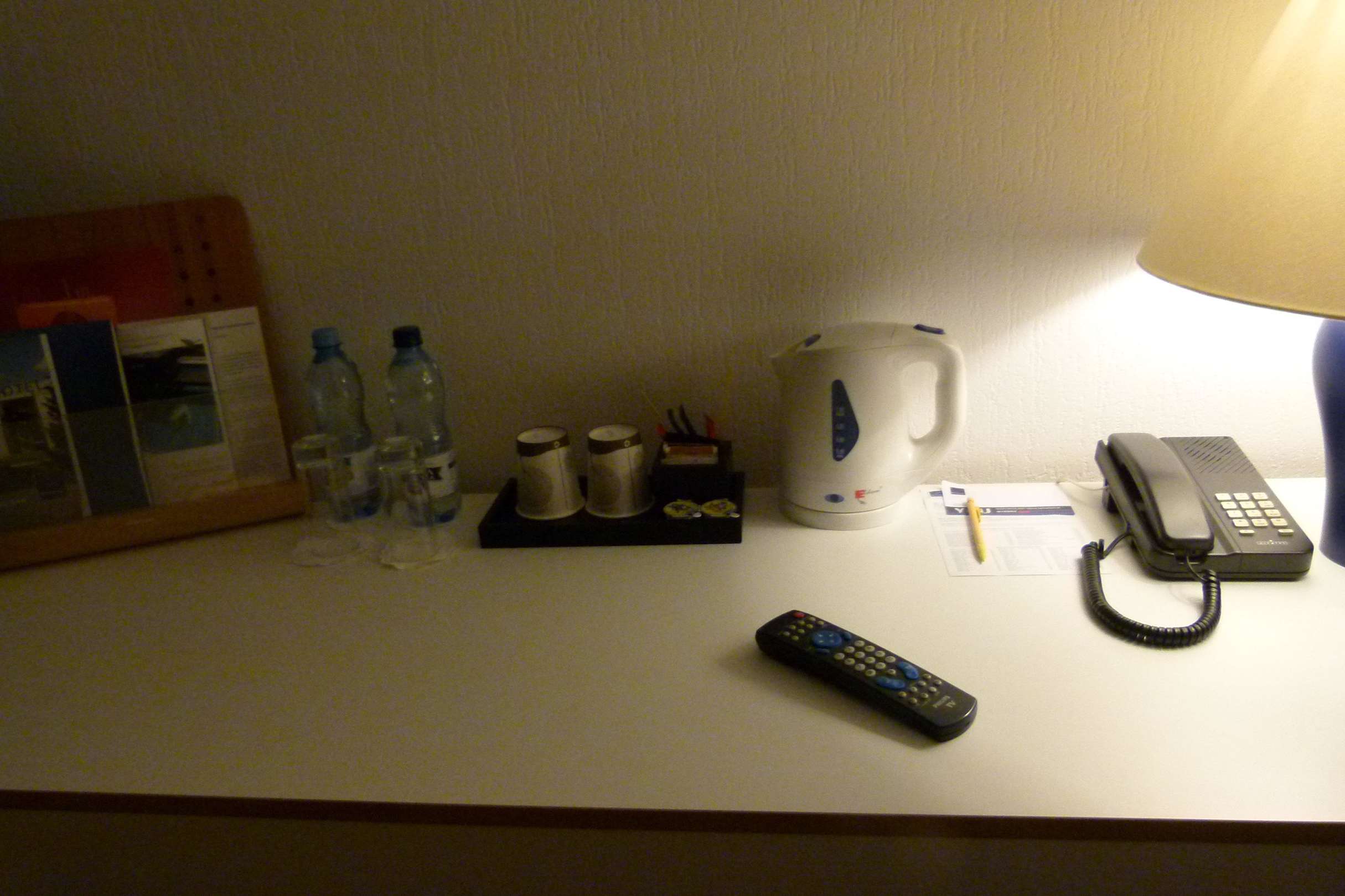 Kaffee gefällig?Es gibt einen Wasserkocher und alles was man sonst noch braucht