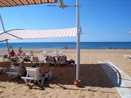 Der Liegebereich des Hotel Novum Garden Side, zum Strand ca. 30 m feiner Sand.
