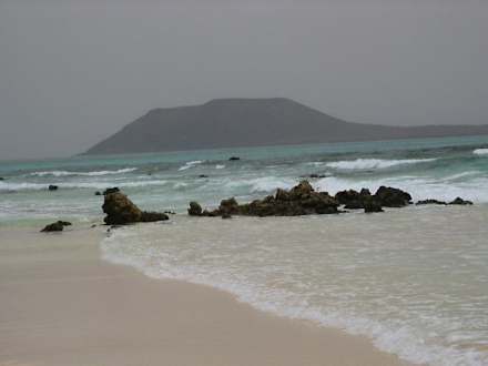 Ein Blick vom Dünenstrand auf die Insel LOs Lobos.
