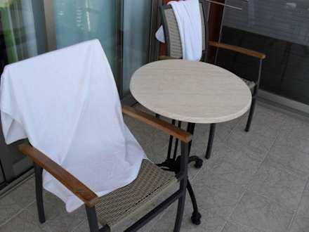 Es gab 2 bequeme Stühle und einen Tisch und diese Waren nicht aus Plastik.