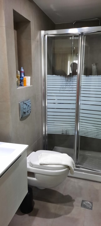 klein aber modernes Bad mit Regendusche