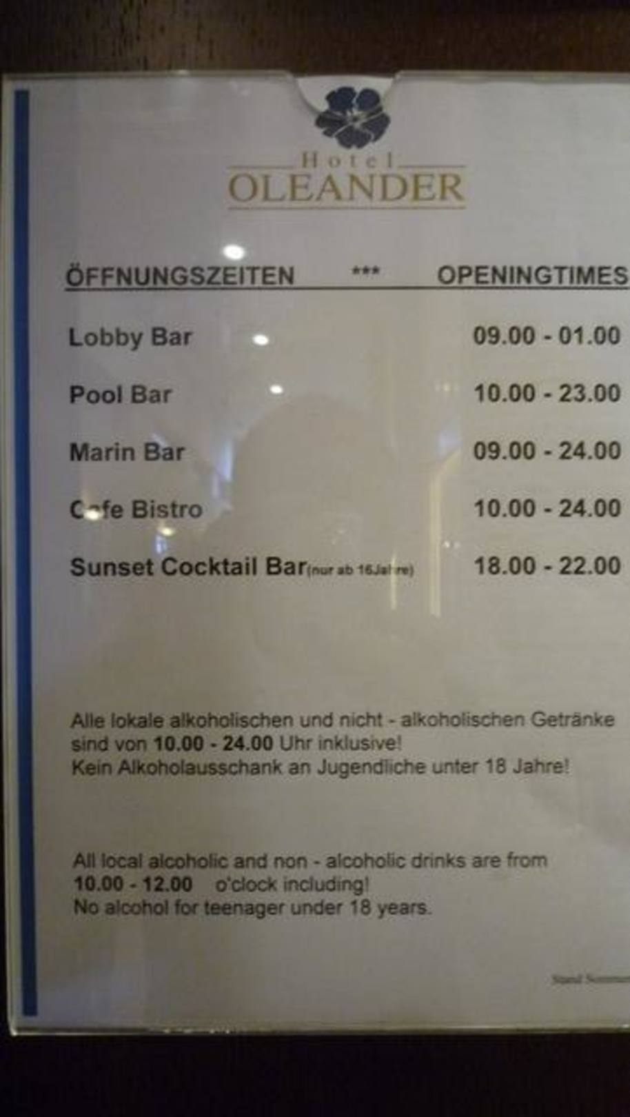 Öffnungszeiten der Bars