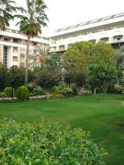 Blick auf die Zimmer und Gartenanlage