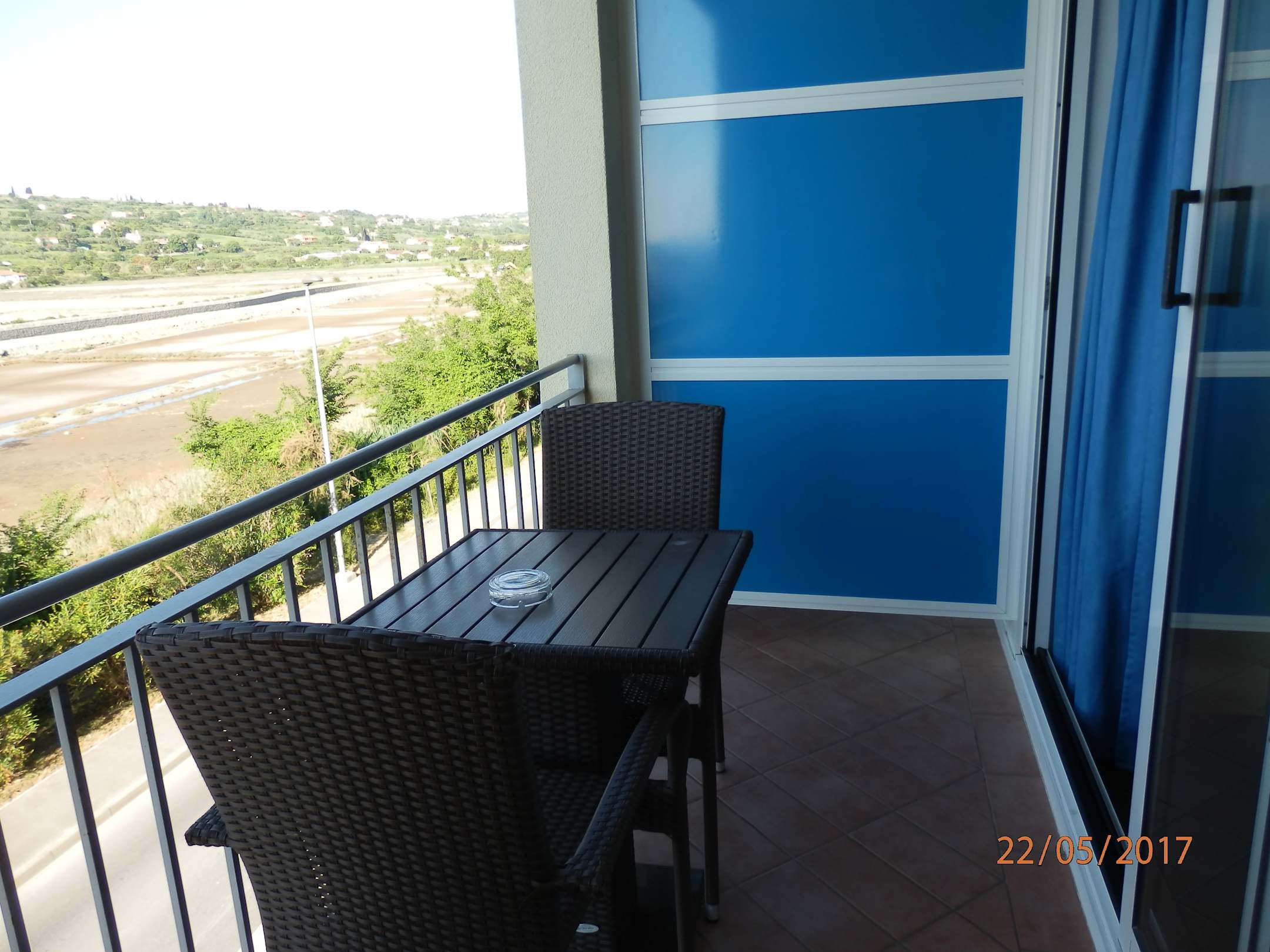 Jeder Balkon hat eine andere Farbe. Der Ausblick auf der anderen Seit geht zur Adria