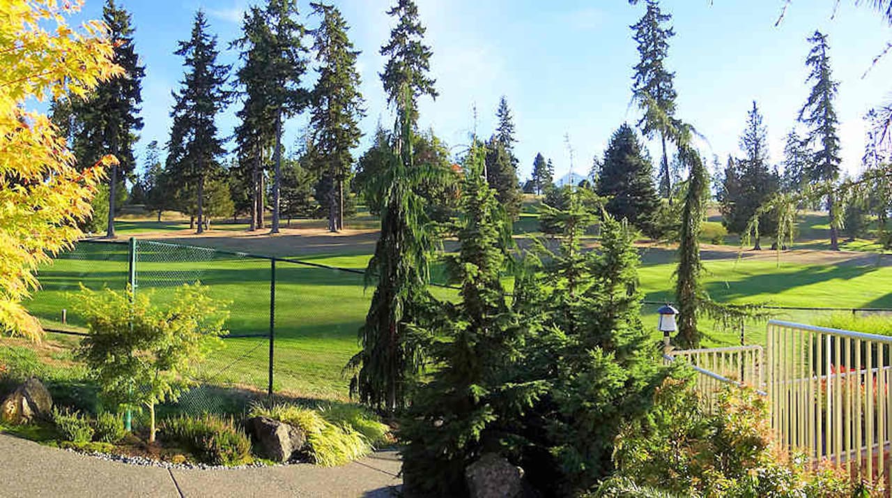 Ausblick vom Aussensitzplatz zum Golfplatz