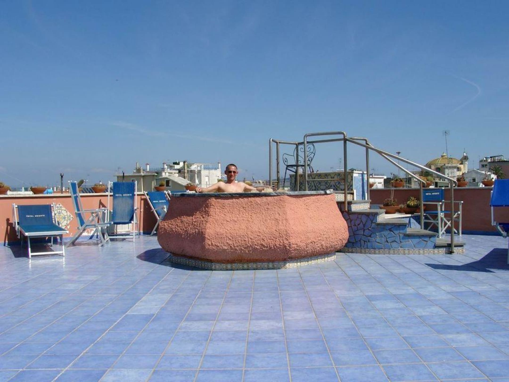 Dachterrasse mit Thermal-WhirlpoolDie Dachterasse des Oriente hat 2 Thermal-Whirlpools, diverse Liege- und Sitzgelegenheiten und einige Fitnessgeräte.