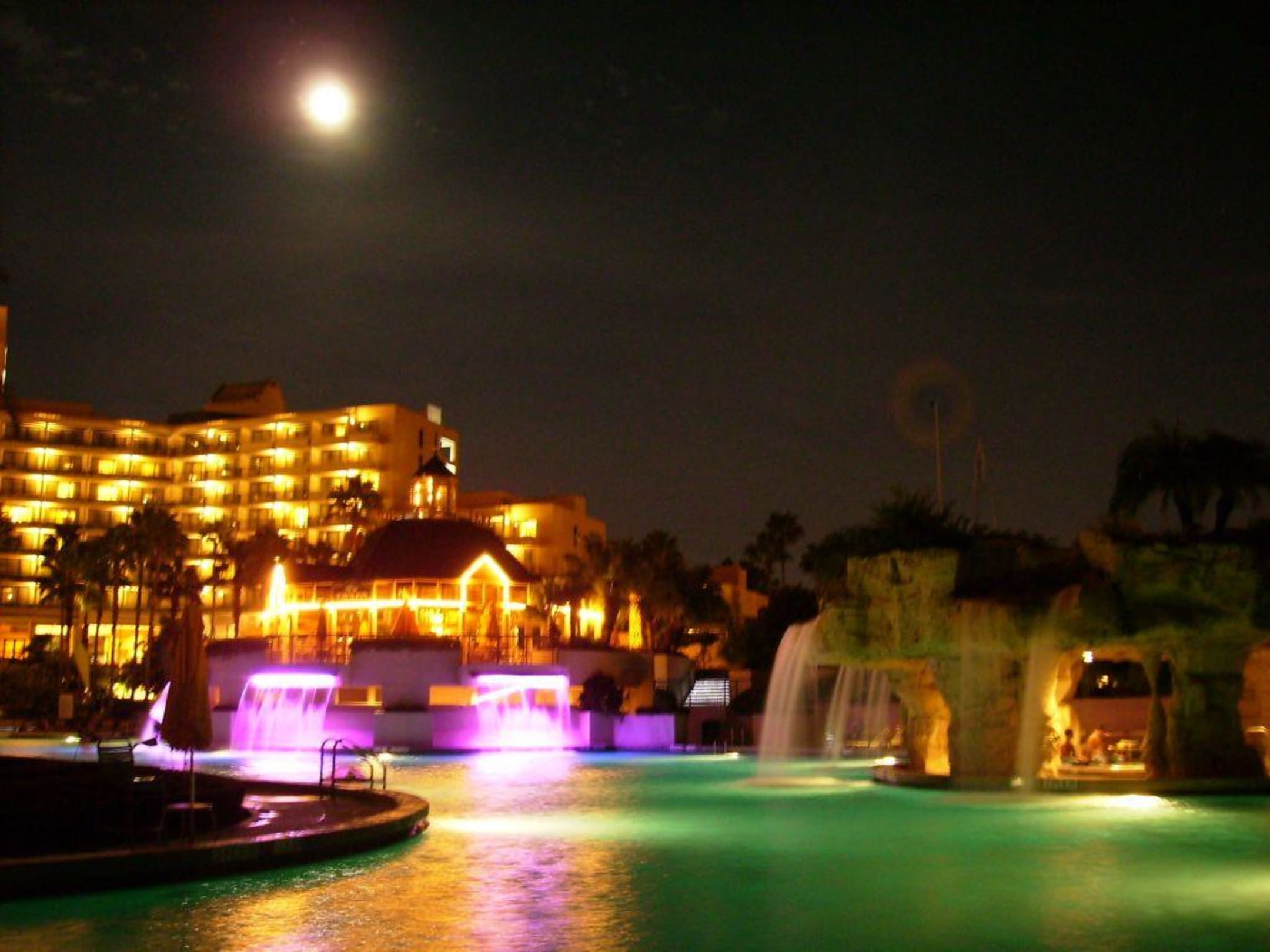 bunter Wasserfall in OrlandoWollen Sie einmal unter einem bunt beleuchten Wasserfall im Mondschein baden ? Dann sind Sie in diesem Hotel richtig: Orlando World Center Mariott. Danach genießt man ein kühles Budweiser an der Bar oder ein T-Bone-Steak im Restaurant Hawks Landing.