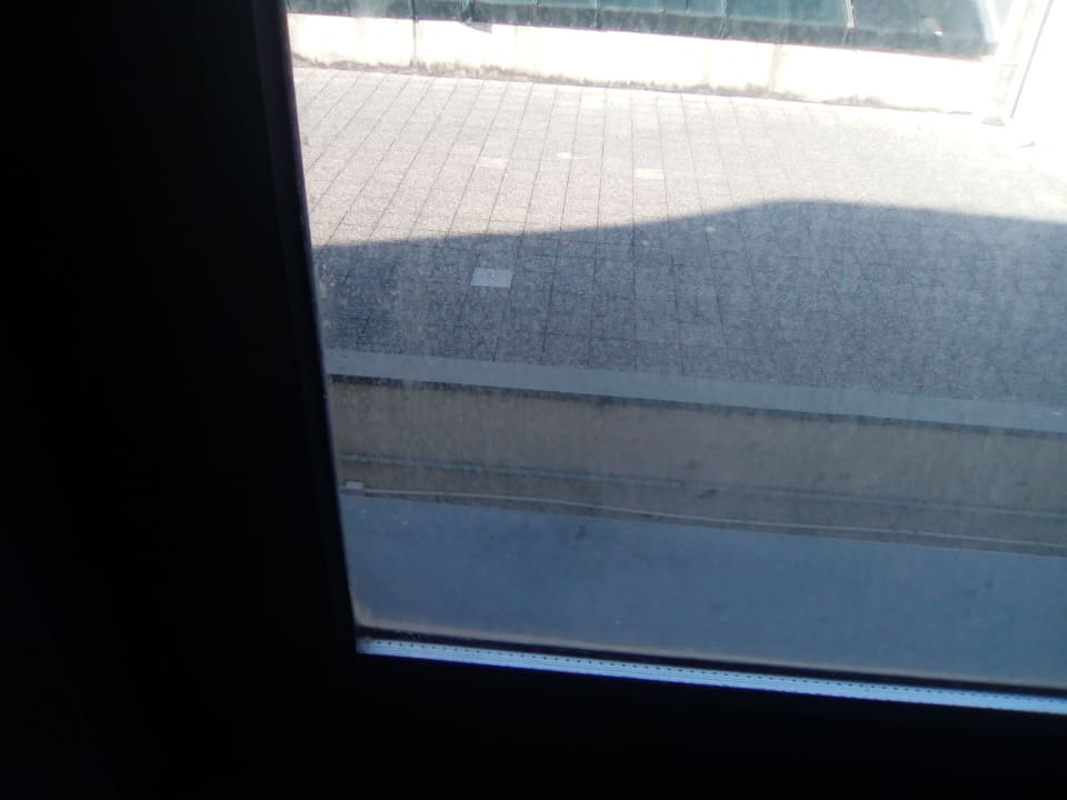 Ausblick auf Innenhof im 2en Stock. Dreckige Fenster.