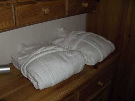 Bademäntel werden gestellt.