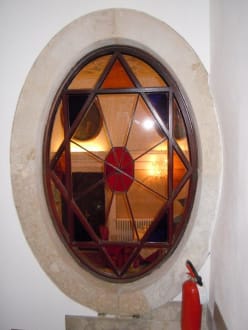 wenn man von den Superiorzimmern herausgeht, trifft man dieses bunte ovale Bullauge an