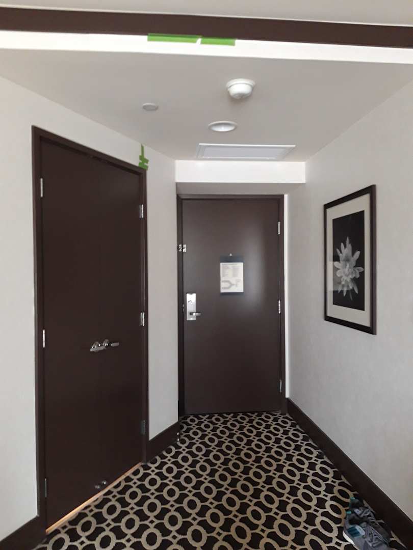 links geht es ins Badezimmer, gerade aus auf den Gang