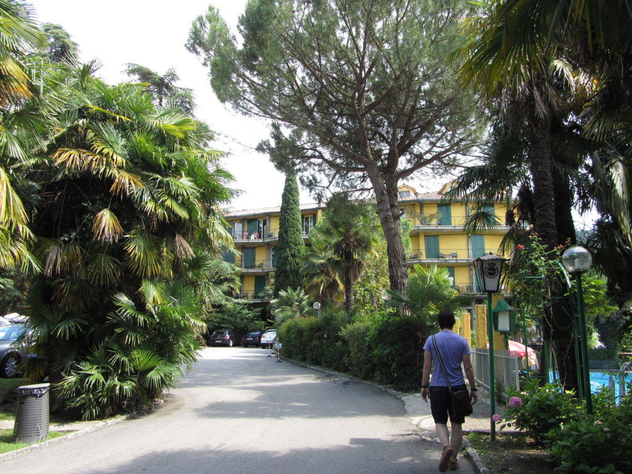 Ansicht Hotel von der Straße aus - viel Grün!