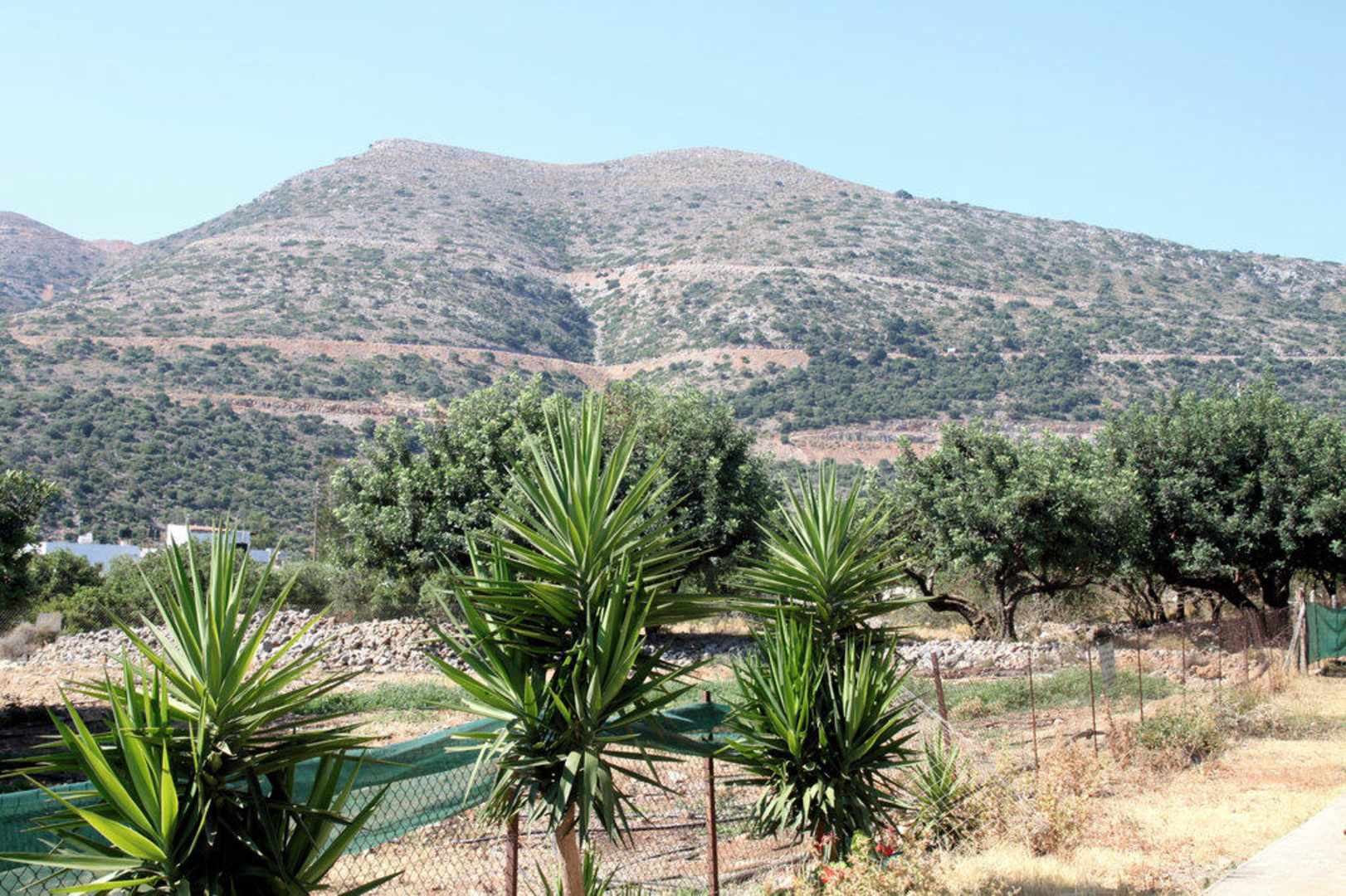 Blick auf die Lassithi-Hochebene vom Hotelhof aus.
