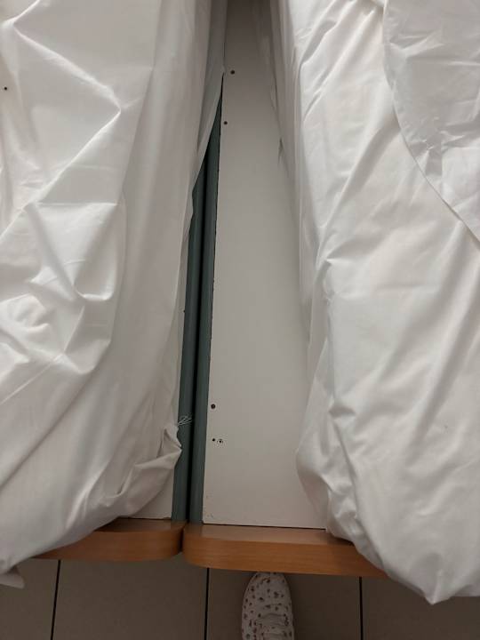 Keine Lattenroste, sondern nur sehr glatte Bretter, einfaches verrutschen der Matratzen