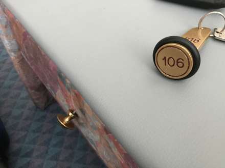 Nachtischschrank mit Hinweis auf das Zimmer 106