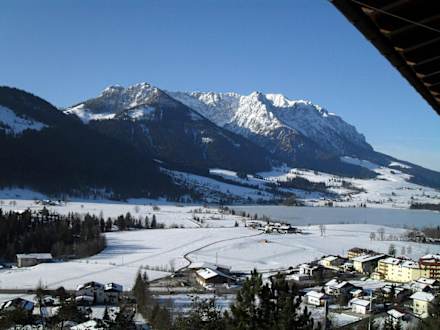 Blick vom Balkon auf den Zahmen Kaiser und den Walchsee