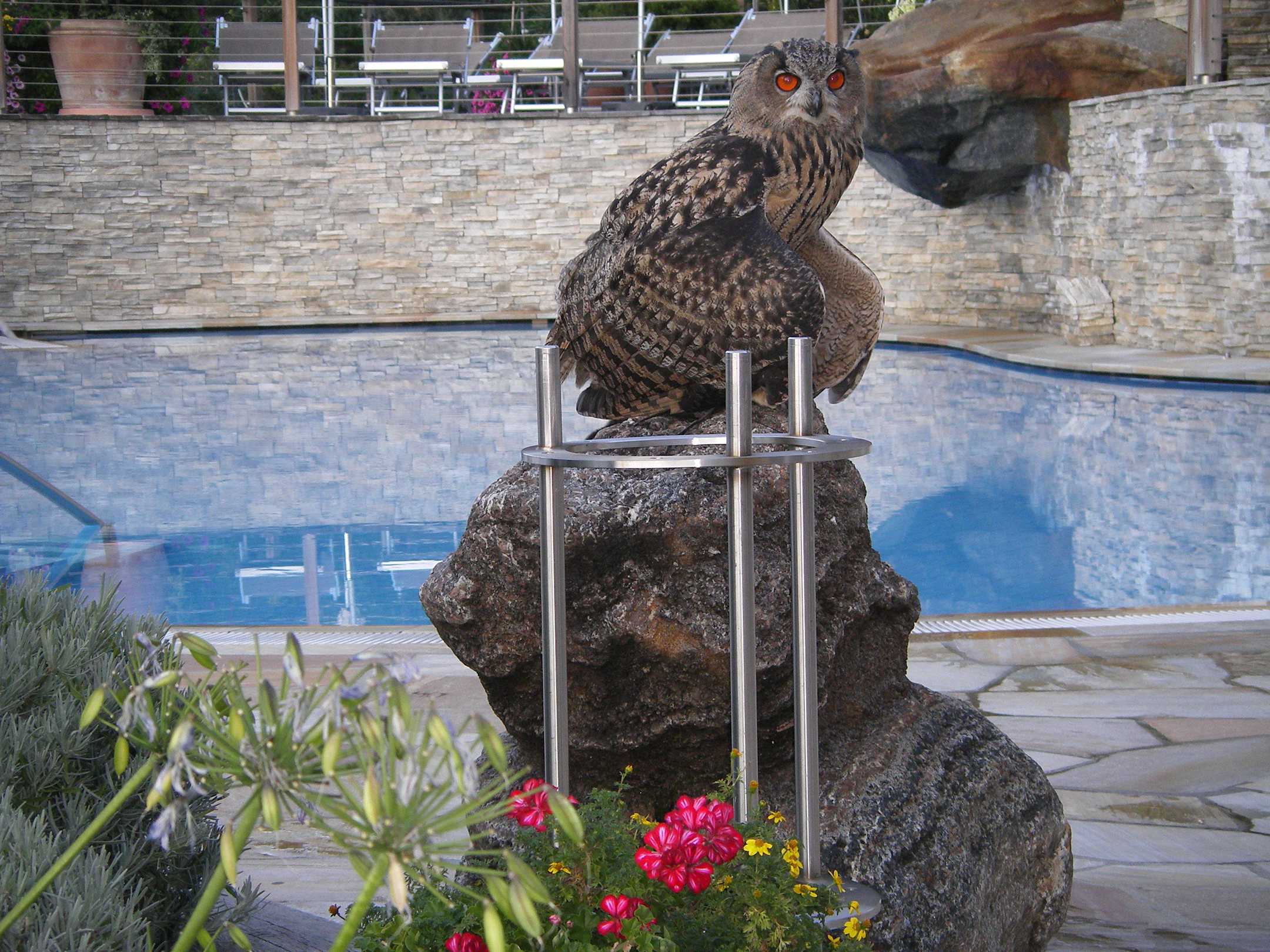 Eule Hugo am Pool