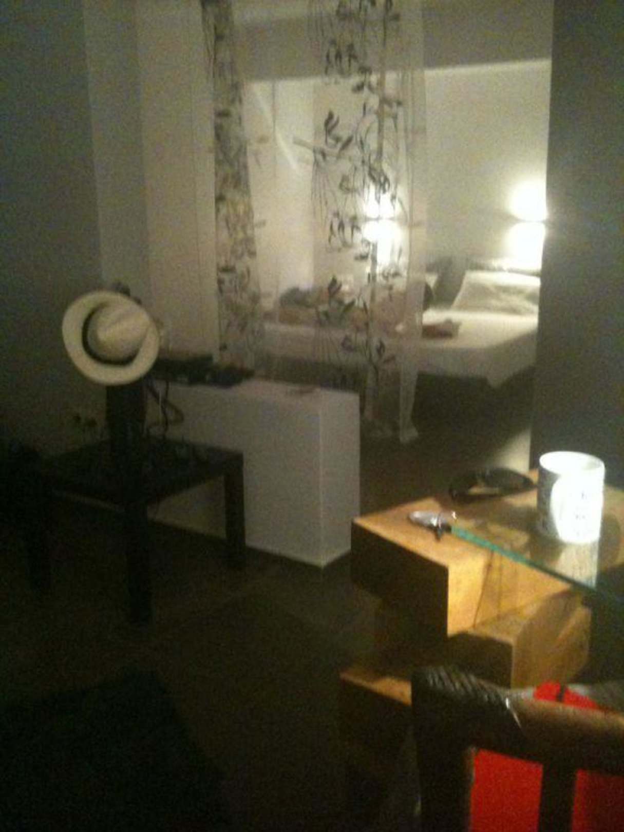 hinter der weissen Wand links befindet sich eine schöne geschmackvolle Badewanne (zusätzlich ist rechts ein großes Bad mit schöner Dusche