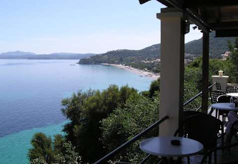 Widok z baru pod hotelemTuż nad małą plażą, przy głównej drodze, dobra muzyka i najlepsza kawa frappe w okolicy.