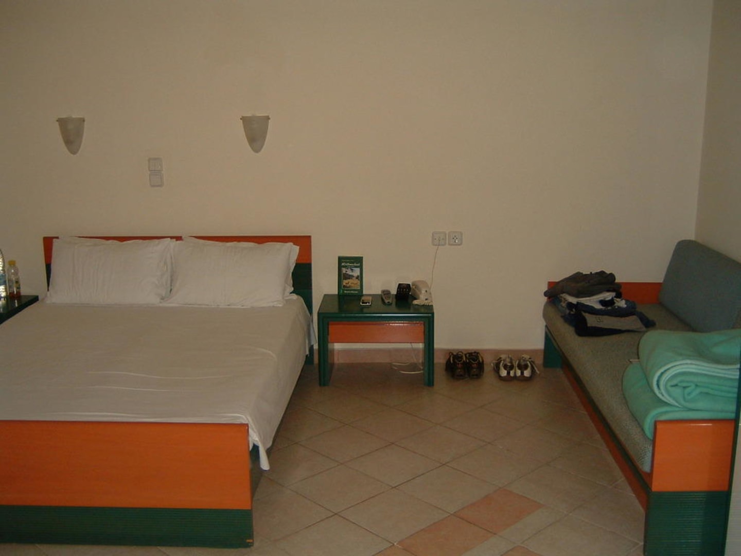 Bett, daneben die Schlafcouch für eine 3. Person