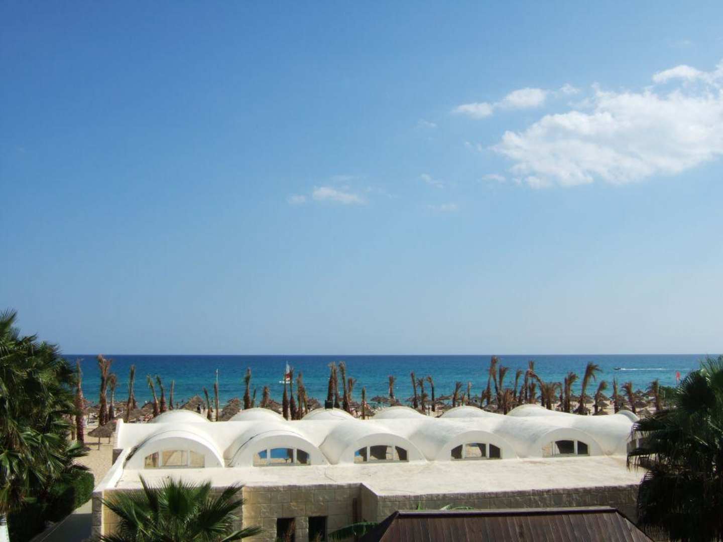 Blick vom Hotel auf Strand und Meer