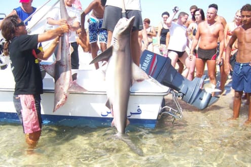 HaiMehrmals wöchentlich wird frischer Fisch gefangen. Meist Haie oder auch mal Schwertfisch. Die gibts dann am Buffet.