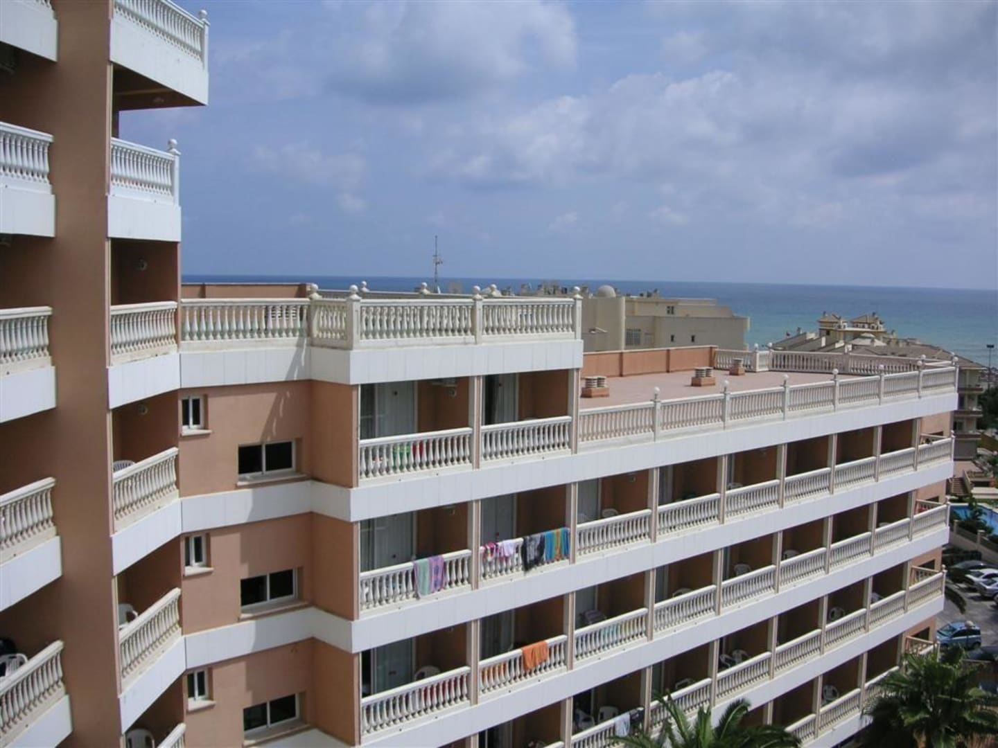 Jak widac z 1 skrzydla bez problemu widac morze. Z obu skrzydel widok na basen i lezaki ktore sa pod hotelem.