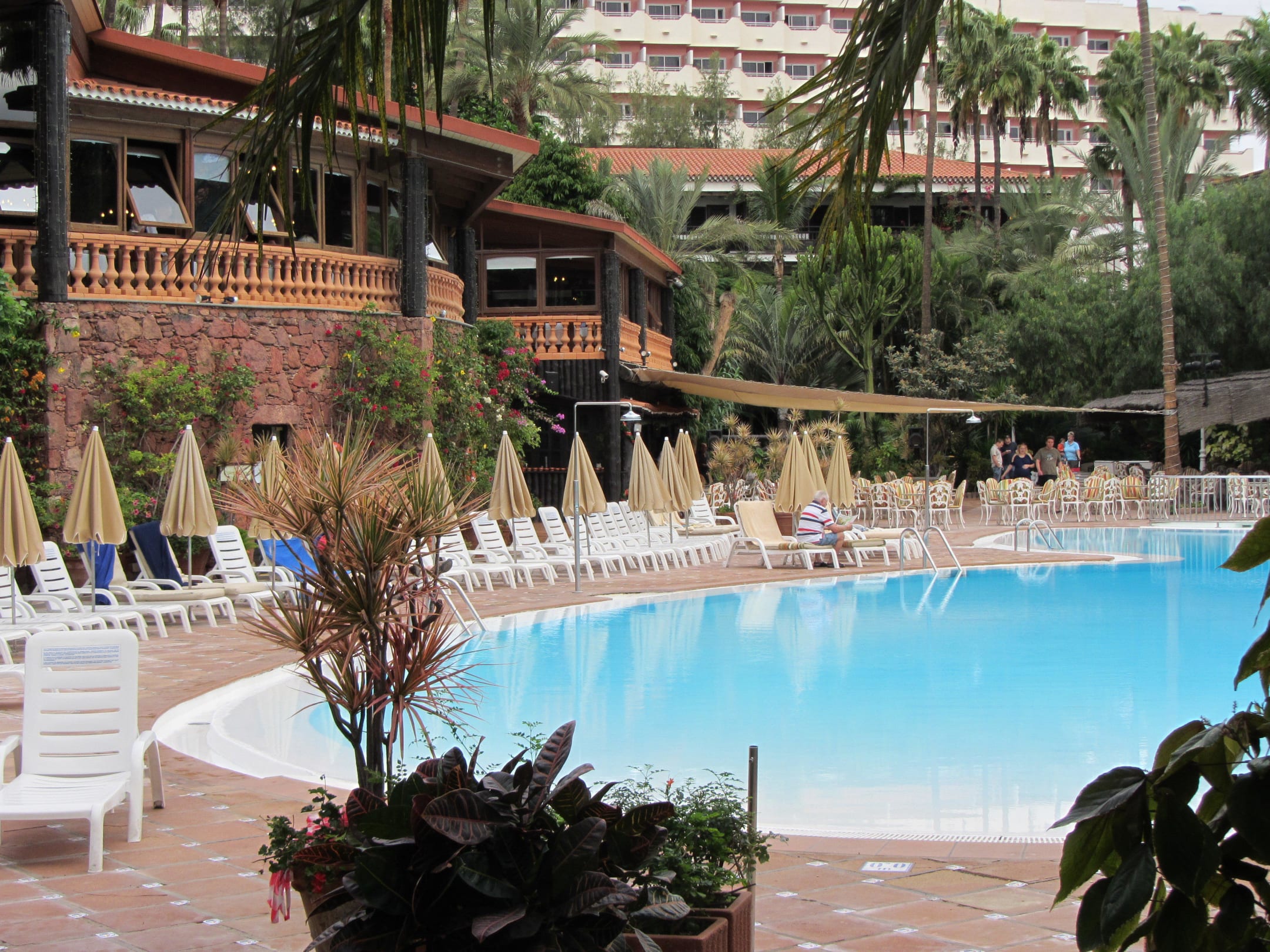 Blick über den Pool auf das Restaurant