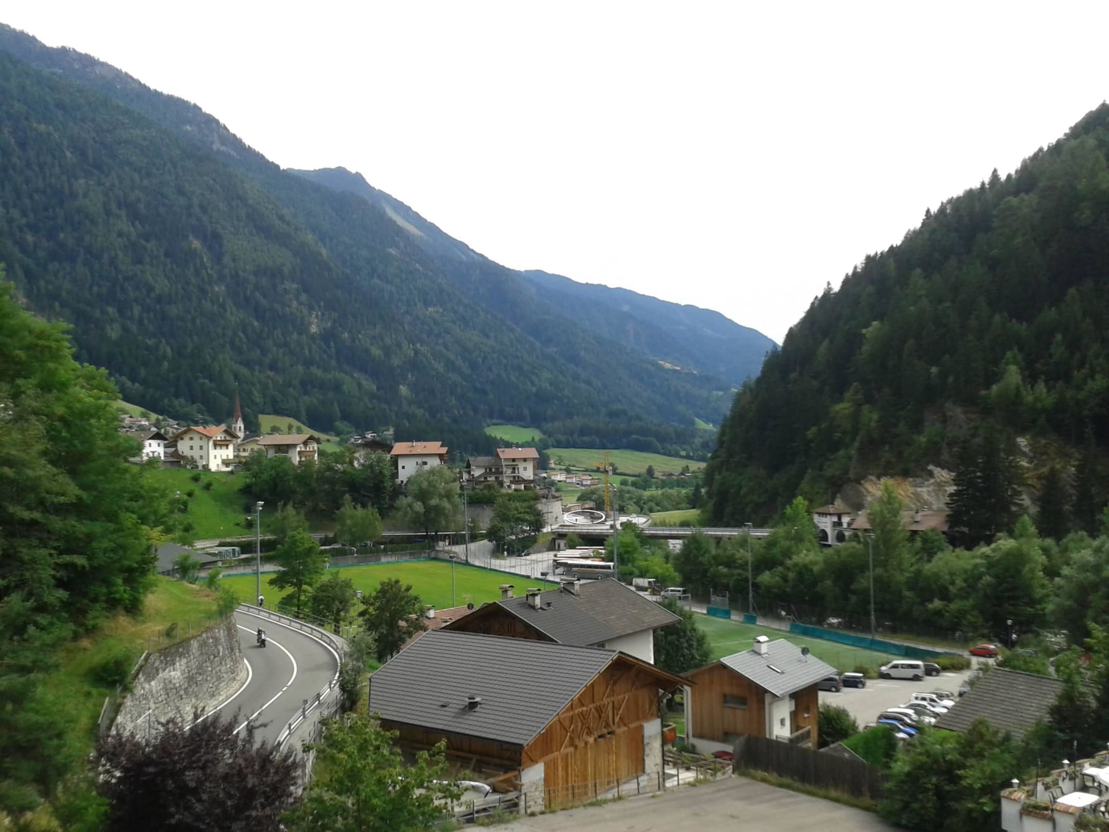 Dies ist die Aussicht vom Fenster ins Passeiertal Richtung St.Martin. Links vorn befindet sich der Ausläufer von San Leonardo