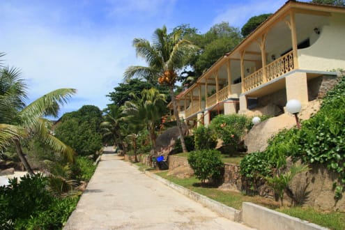 Rechter Hand sieht man die Superior-Bungalows und links ist die Anse Patates.