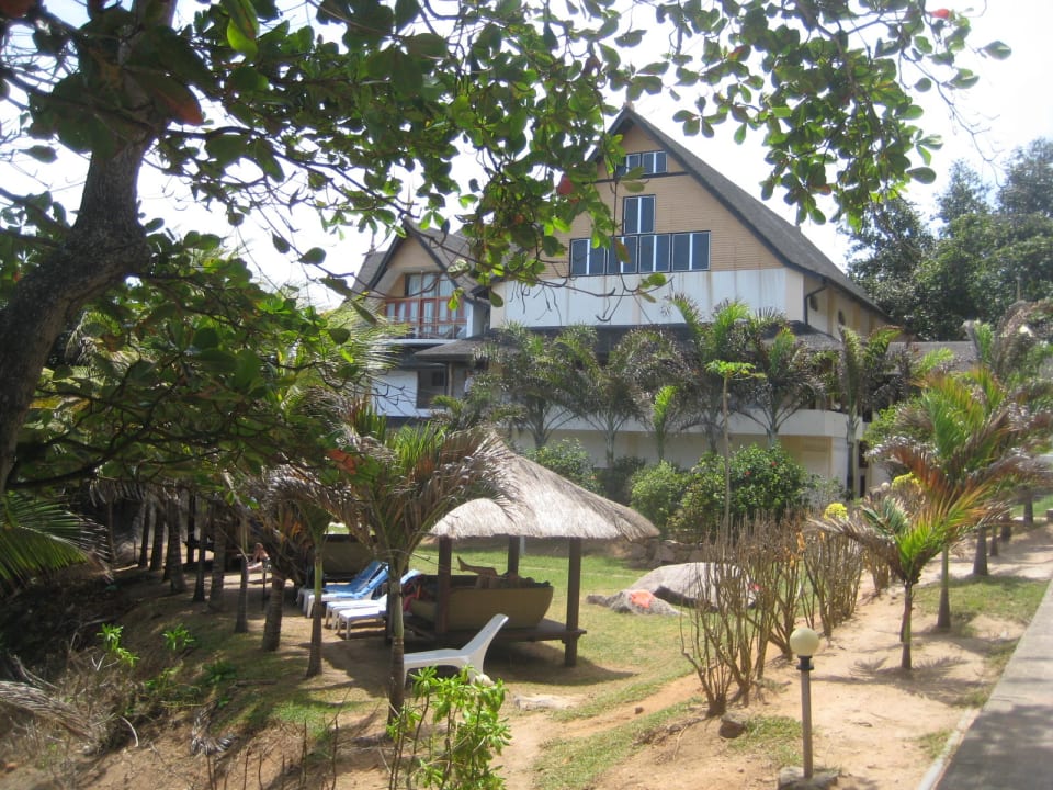 Hauptgebaeude mit Liegehuetten zur Bucht