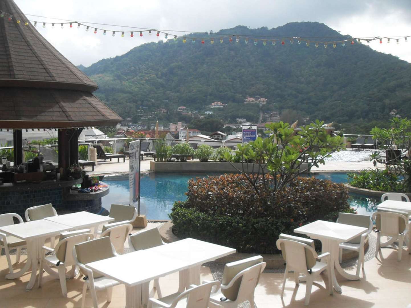 Sicht vom Frühstücksbereich auf den Pool