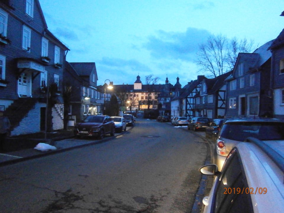 Hier ist das Schloss Berleburg zu sehen. Vorne links Haus Erna.