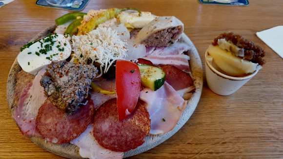 riesige Brettljause mit Bratenfett
