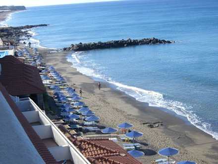 Ausblick von Zimmer auf Strand vom Hotel