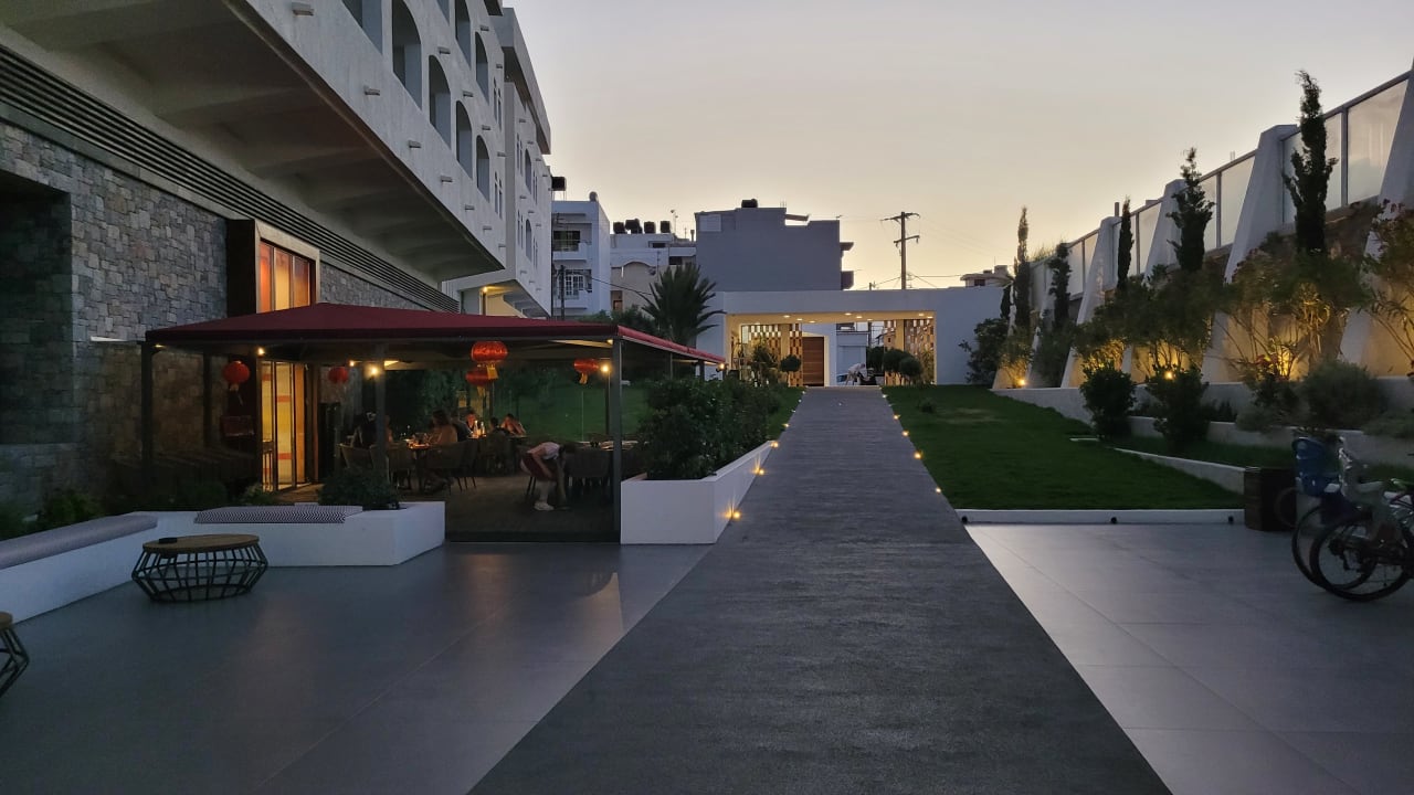 Blick vom Hoteleingang in Richtung Straße / Links HotWok A la Carte Restaurant (Getränke müssen leider extra bezahlt werden - für 4* allinklusive leider traurig)