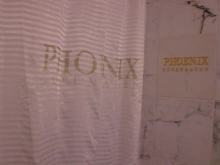 Duschvorhang und Fliesen mit Logo
