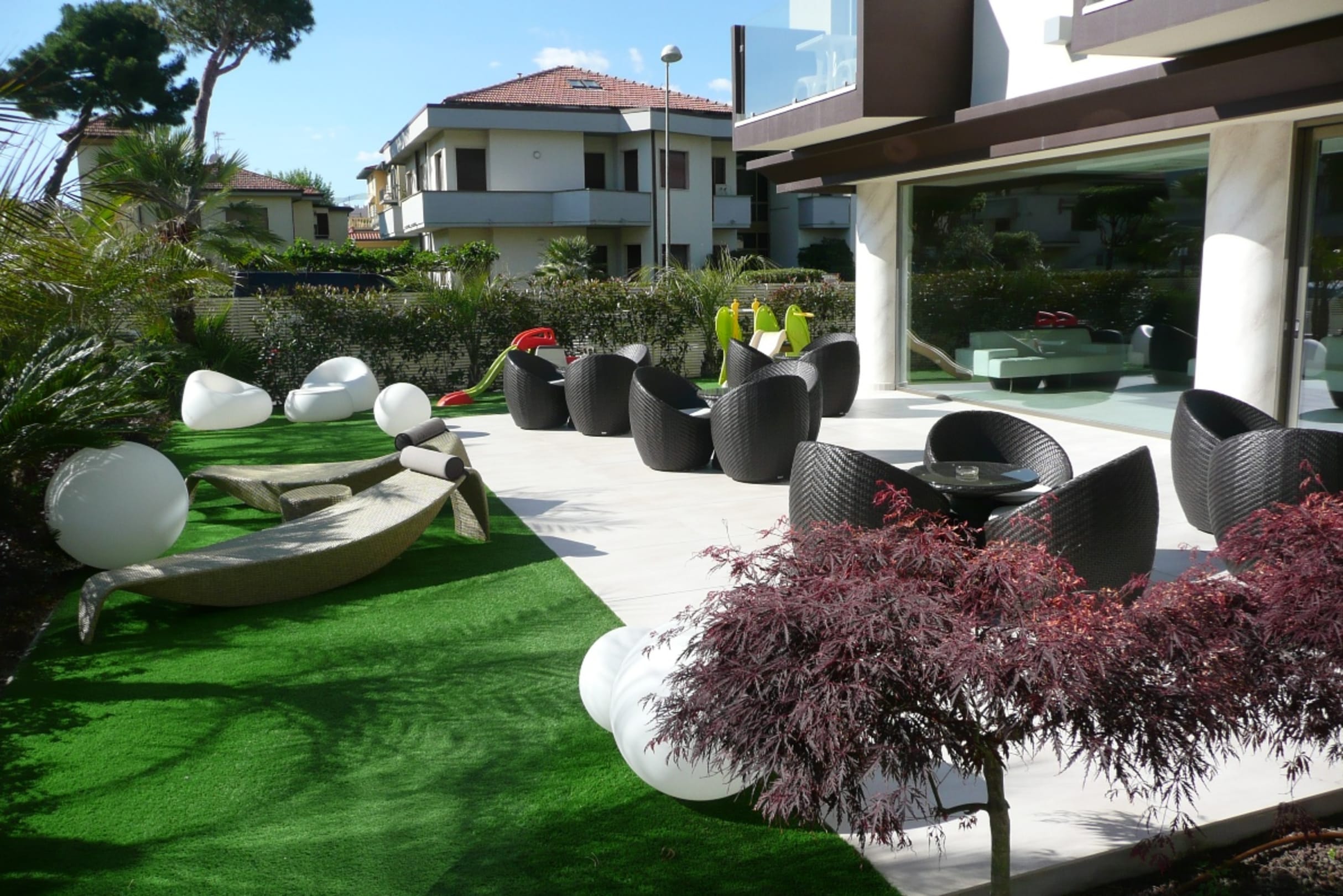Hübsche Sitzmöglichkeiten vor dem Hotel.