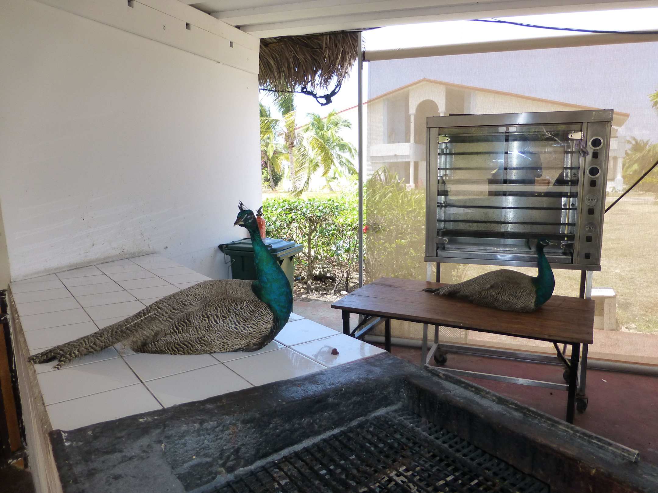 Pfauen an einer Grillstation Hotel Playa Pesquero