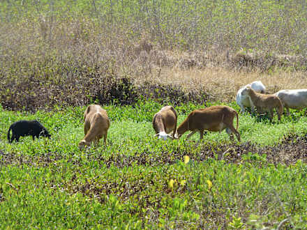 Grasende Schafe am Strand