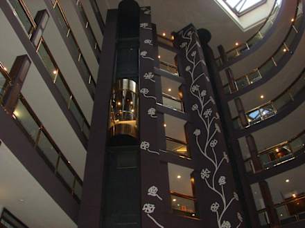 Innenansicht des Hotels mit den Aufzügen