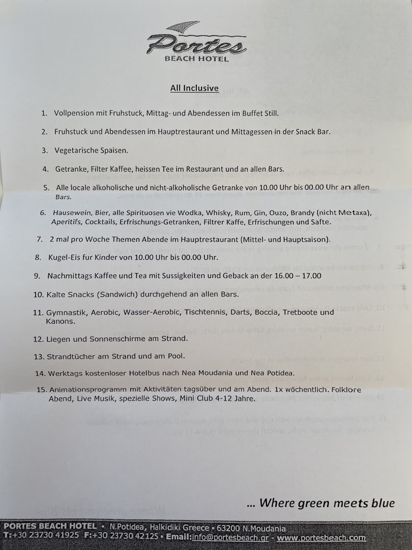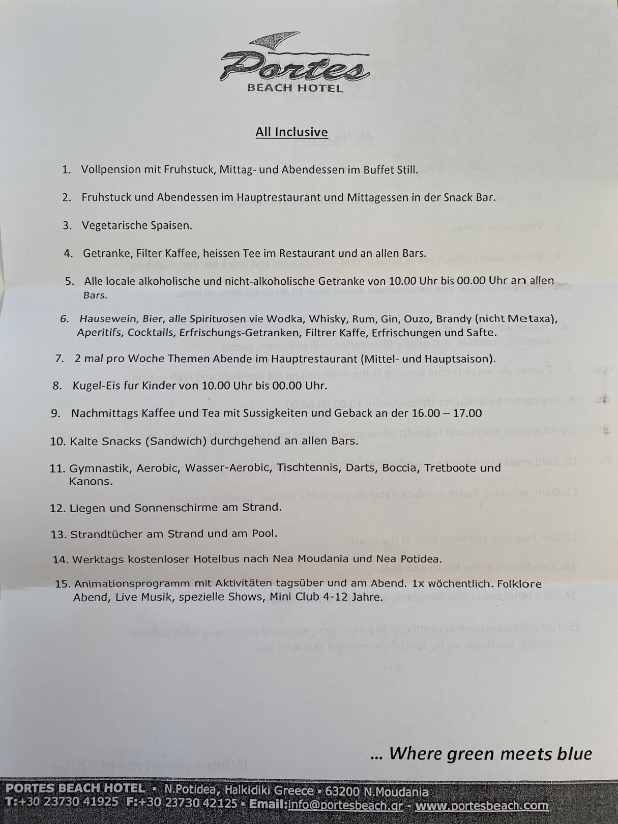 Infoblatt der Rezeption.