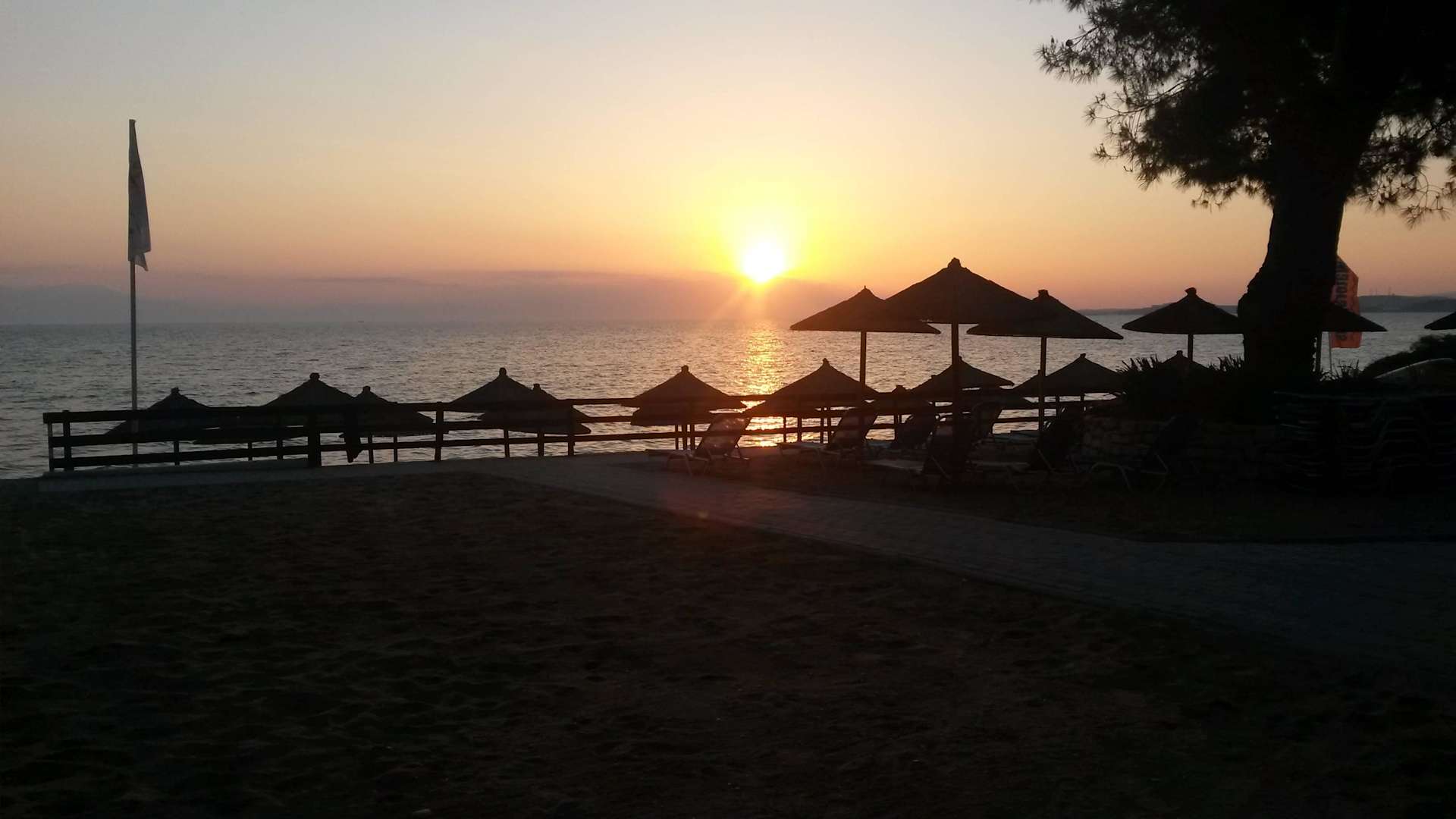 Sonnenuntergang vom Beachvolleyballplatz aus