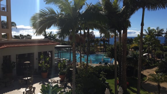 Blick vom Hotel in den Garten / Poolbereich Richtung Meer