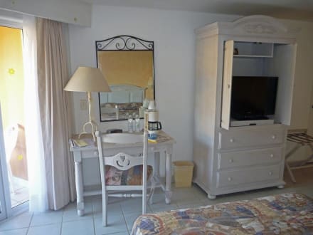 Schreibtisch und Fernseher im Schrank
