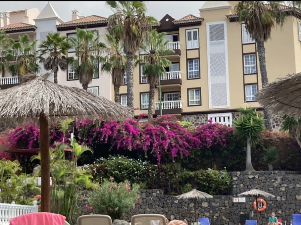 Blick vom Pool in die Gartenanlage.