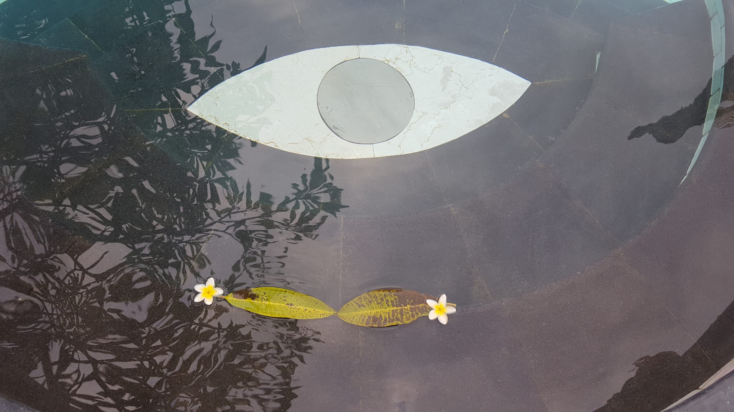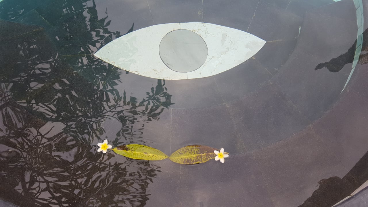 Sogar die Blüten und Blätter, die von den exotischen Bäumen ins Pool fallen lächeln dich an!